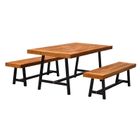 Dining Set 6 Seater Metal Frame with Acacia Wood Natural Colour