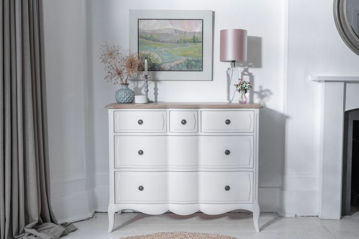 Each piece of Amelie furniture is carefully created by hand. The soft undulating bow fronts and elegant sweeping curves of the cabinets and beds are the signature details of this beautifully constructed range.