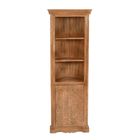 Solid mango wood handcrafted corner bookcase with cupboard. Addition to our new artwork mango range. Beautiful detailing artwork into the 100% eco sourced natural wood.