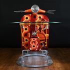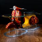 The central body is an authentic vintage Vespa, skilfully restored and custom adapted by our craftsmen with wrap-around glass and a hand-engraved chrome, curved metal stand. The iconic designs and colours of the 60’s have inspired the bespoke artwork to create a unique, contemporary iconic design. With its glass top, this design can be admired from every angle. Features working lights, ensuring this centrepiece will always be in the spotlight.