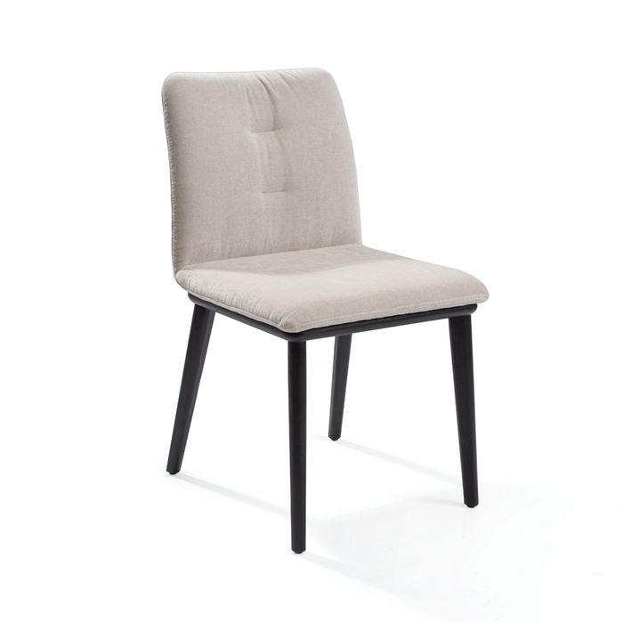 Upholsted in Giselle crushed velvet colour 03 Greige, solid Ash timber leg in matte black.