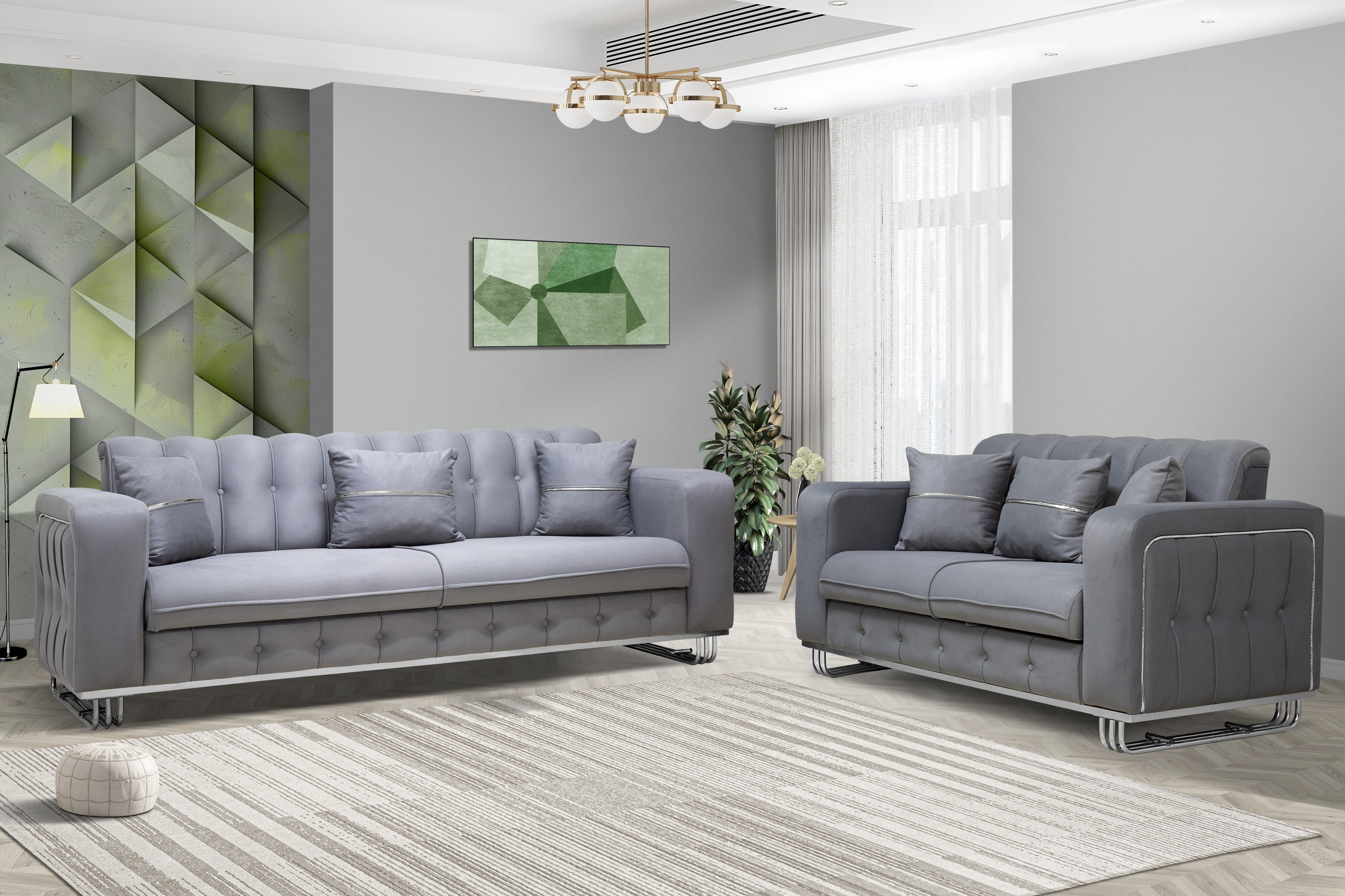 The "Berlin" Sofa, a timeless and elegant piece of seating furniture, exudes an air of relaxation and luxury. Crafted from high-quality, sustainably sourced timber, this sofa boasts a refined finish. Its plush cushioning, wide armrests, metallic feet, and traditional button stitching evoke the sophistication and grandeur of a bygone era. The comfortable springing, sturdy wooden frame, and breathable upholstery ensure superior seating comfort. This upholstered furniture can be easily placed and mixed and matched to create a personalized living space. Enhancing any living room with its classic design, the "Berlin" Sofa offers exceptional comfort and aesthetics.