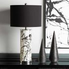 Black and White Splash Glass Table Lamp with Black Velvet Shade