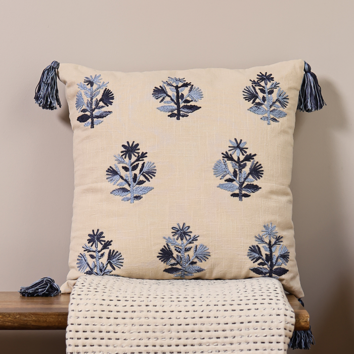 A richly embroidered floral cushion in neutral beige, the Daisy cushion blends traditional craftsmanship with bohemian elegance. Made from 100% cotton with a choice of micro polyester or feather filler, it’s designed for comfort without compromising on detail. The square shape and discreet zipper make it both versatile and practical. Designed to elevate both sofas and store displays, this cushion is a standout addition to any space.