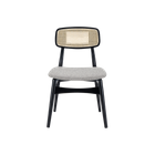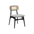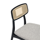 Experience effortless elegance with the Elder Dining Chair. This chair brings together a combination of bohemian and Scandinavian styles, to give you a unique and charming piece of furniture. This chair offers a natural and organic aesthetic and features a black frame with rattan detailing that adds a touch of warmth. The seat is designed for comfort with a boucle upholstered cushion and the chair's cylindrical, angular design is sure to make a statement in any dining room.