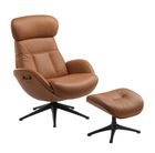 Elegant is designed with a gas spring mechanism which lets you change positions smoothly and effortlessly. The footrest will ensure you a calm place to relax and unwind. The headrest is adjustable in height and angle, to get the best position for reading, watching TV or relaxing. The shell of the Elegant chair is available as fully upholstered. The elegant aluminum legs are available in black, polished aluminum or wood decor.