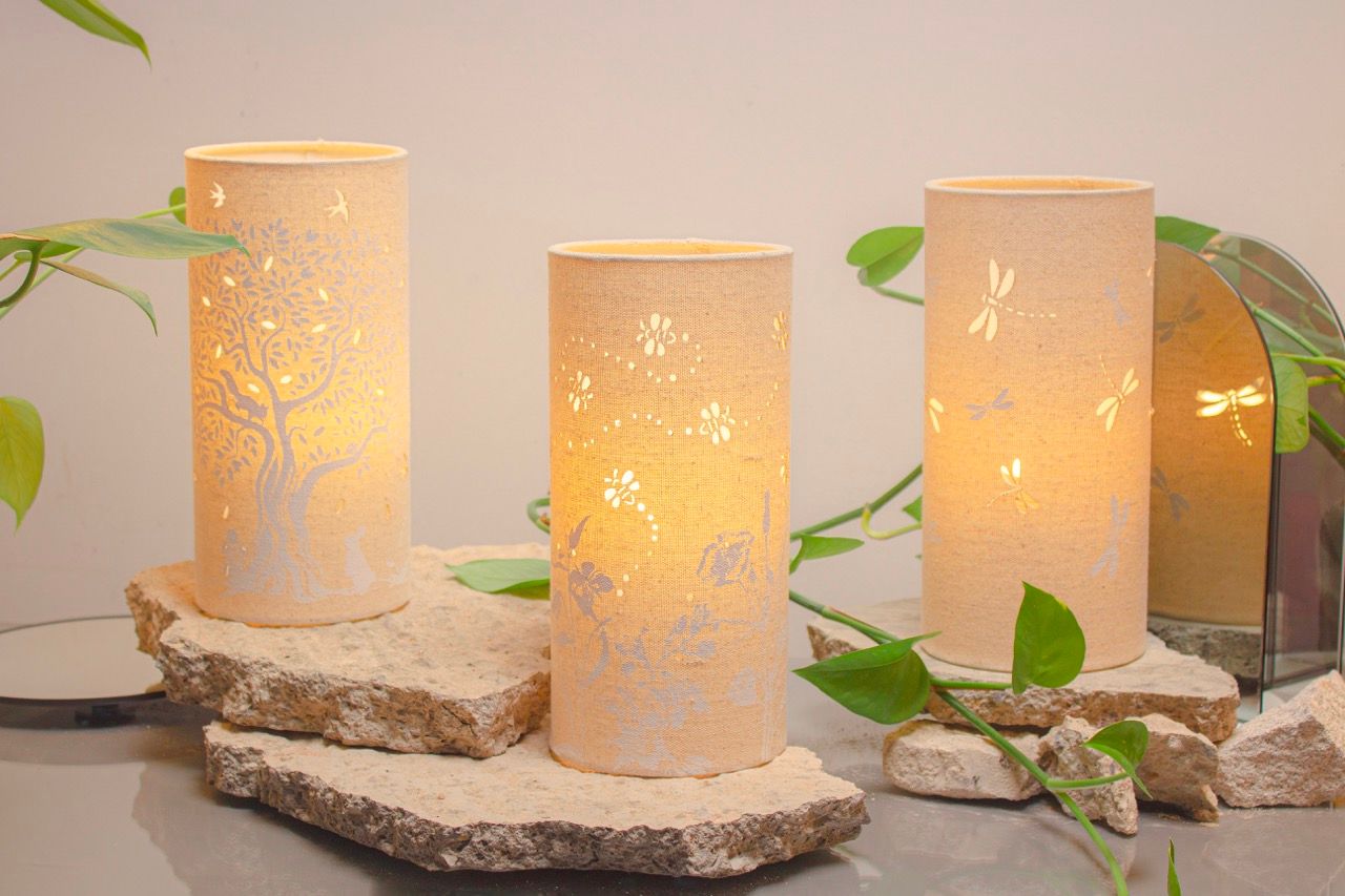 Whether it's for your home or as a gift, our fabric lamps will bring a cosy atmosphere to any space from the silhoulette style with cut-outs that project shadows in various shapes onto the surround walls to the latest collection of colour mixes.