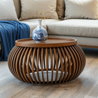 Indus Solid Wood Small Round Low Coffee Table