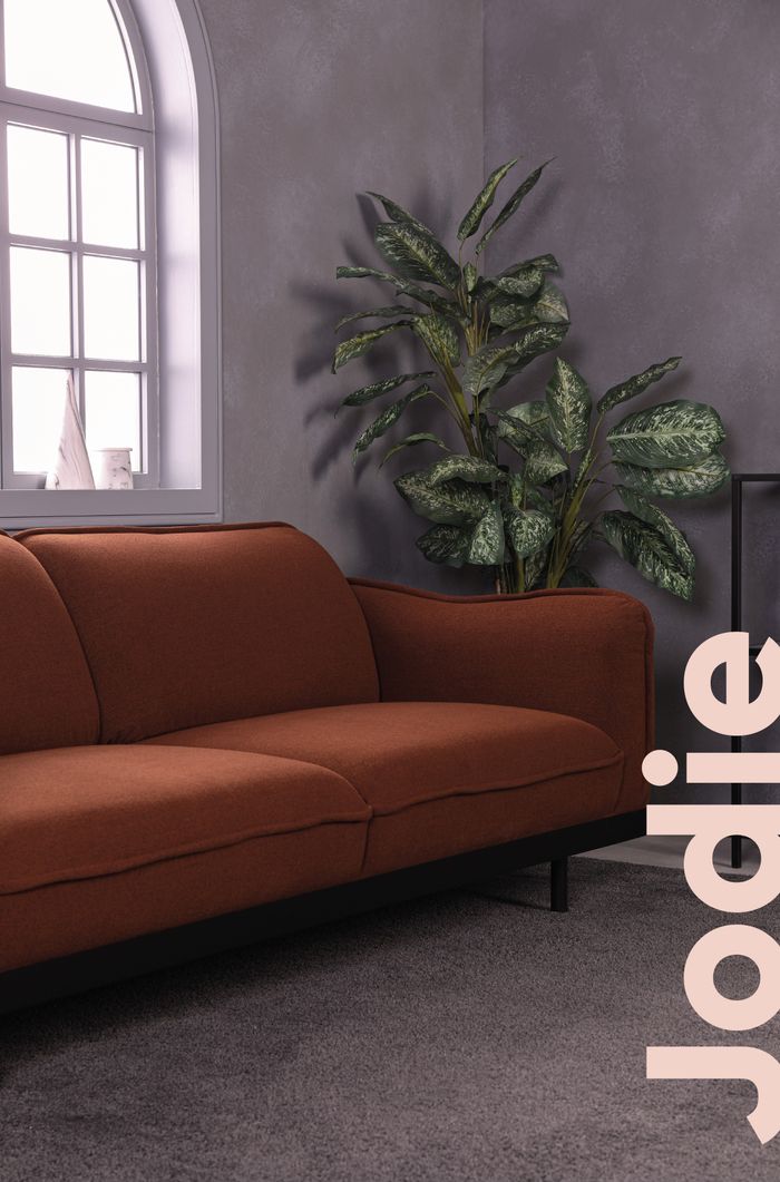 Created with a Neo-Retro inspiration, JODIE 3 places sofa stand out for its irreverence. The unexpected combination of bold volumes and a dark metal frame, places this sofa in another visual level. Due to its tight back, with an elastic webbing support complement a super soft foam, an always clean tidy appearance is guaranteed. Both seats are constructed with a sinuous spring suspension, soft cell foam a gentle layer of soft sense polyester fibre. The cylindrical metallic feet give a sudden floating eect.