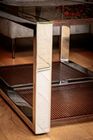 The Joker is a piece built around the concept of duality; a true yin and yang visual. The stunning mirror finish stainless steel chassis is juxtaposed delightfully by the decay and warmth of the inset glass top frame & mesh undertrays below. Cousin to our California unit, it shares the same clinical lines and minimalist geometry, only with a smaller footprint - and VERY different aesthetic energy. The Joker is finished with a 70s inspired bronze tinted 6mm glass top for a touch of nostalgia and added richness alongside the warmth of the rust. All rusted sections have been sealed with a clearcoat lacquer to preserve the finish