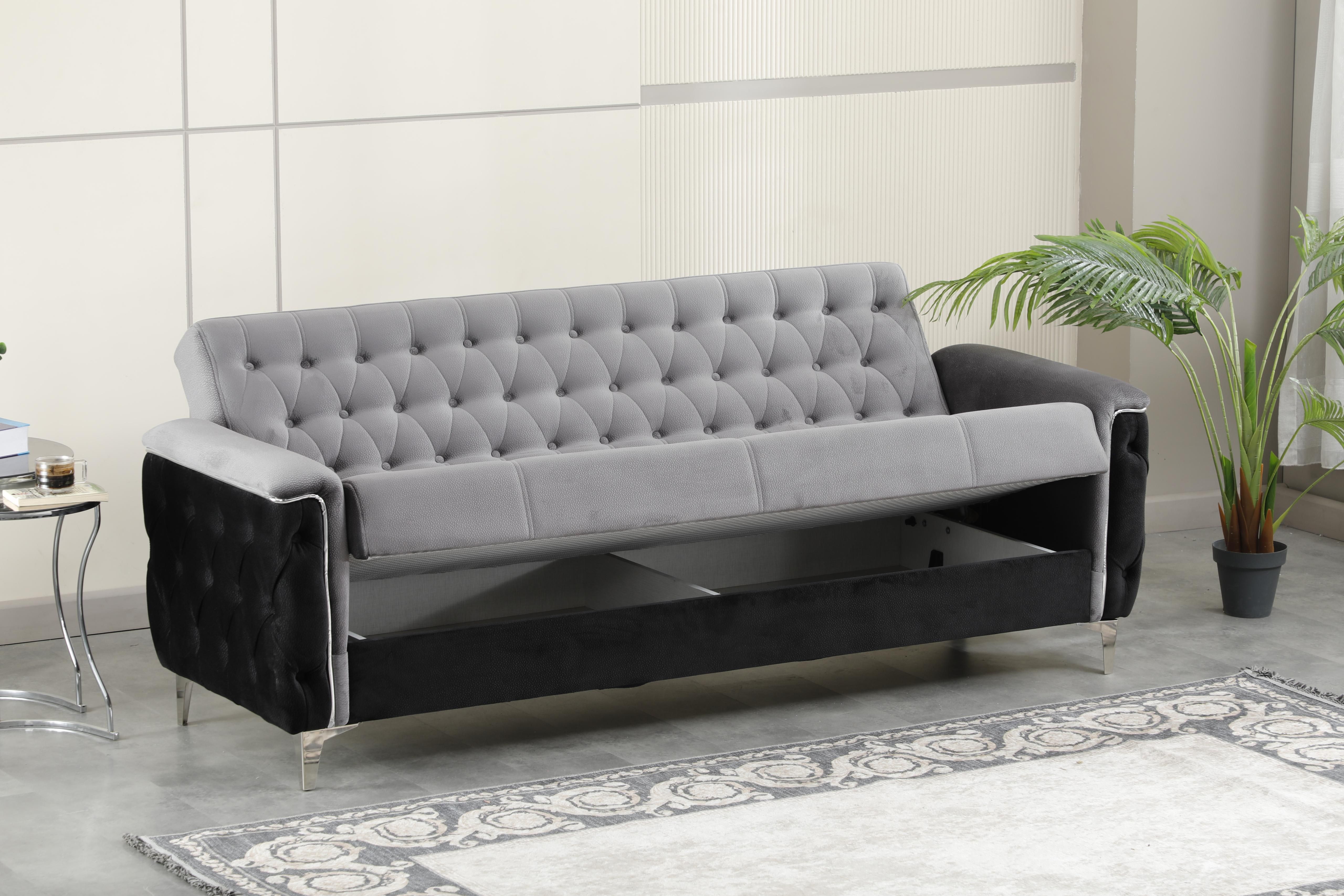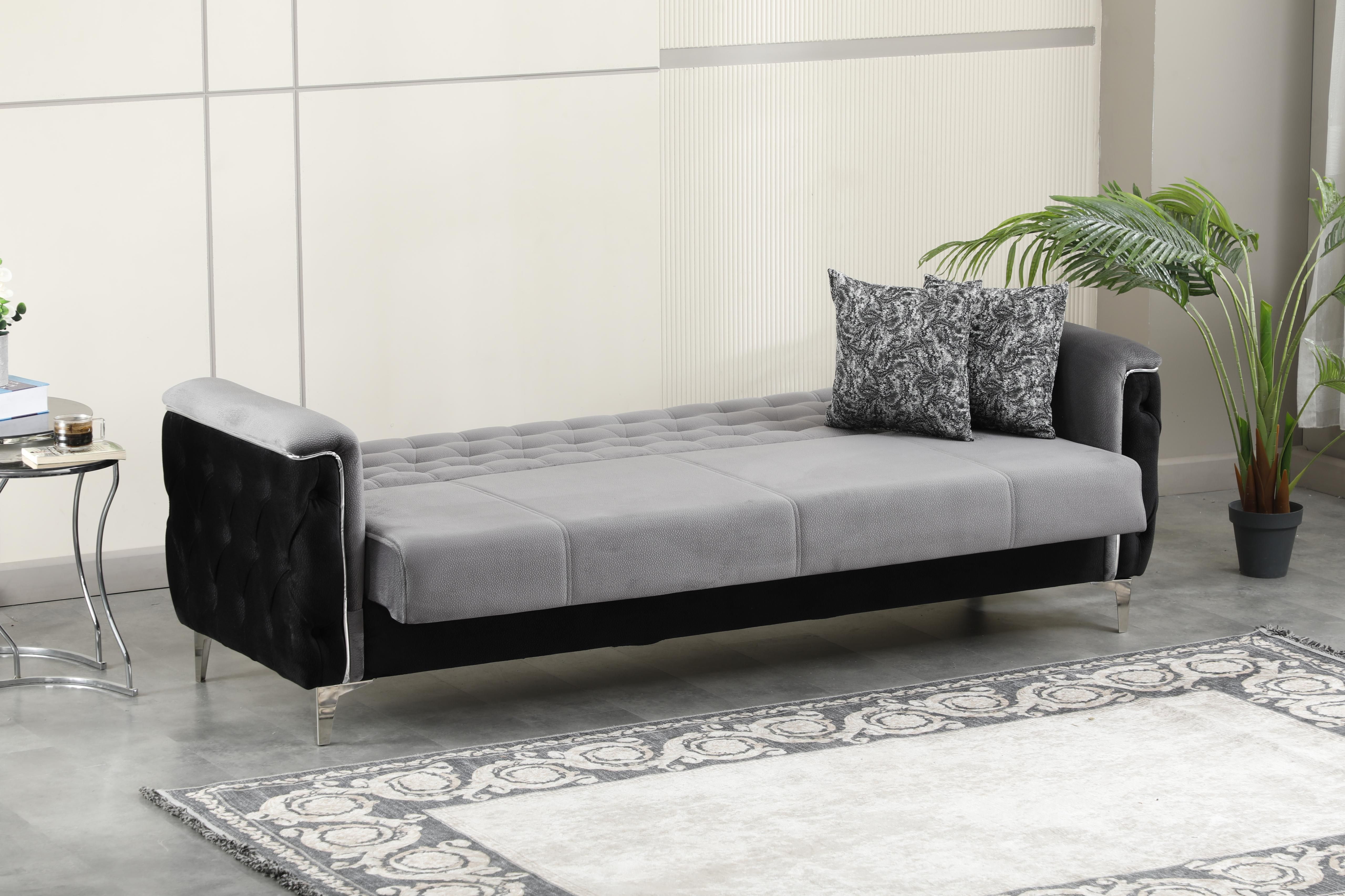 Defined by a Wool Fabric With arms, this 3 Or 2 seater sofa bed With Storage suits any modern or traditional interior. The chesterfield design as well as soft, thickly padded seat cushions, provide best sitting comfort. The sofa presents a classic diamond stitching button tufting. Featuring sofa cum bed with storage underneath, it quickly unfolds into a bed. This sofa bed is easy to care for and looks great with any decor.