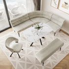 The Lazzaro Range combines modern sophistication, comfort, and practicality for stylish dining spaces. Featuring a white ceramic dining table with curved edges and a durable, heat- and scratch-resistant surface, it pairs perfectly with the Lazzaro Corner Bench Set and backless benches in Grey or Champagne fabric. Our Lazzaro corner bench is versatile as it can set up as left hand side long or right hand side long. The corner bench offers flexible LHS/RHS configuration with 2 and 3 seater options, while the backless bench provides sleek, space-saving seating. Supported by contemporary black legs, the range creates a coordinated, elegant, and versatile dining environment.