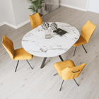 The Lorenzo Dining Table Range elegantly balances contemporary style and functionality. It features four dining table options and a matching coffee table, available in three refined finishes: Grey Ceramic Look, Natural Wood Look, and White Marble Look.