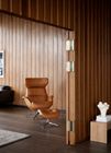 More is designed with a gas spring mechanism which lets you change positions smoothly and effortlessly. The footrest will ensure you a calm place to relax and unwind. The headrest is adjustable in height and angle, to get the best position for reading, watching TV or relaxing. The shell of the chair is available as fully upholstered. The elegant aluminum legs are available in Wood Decor, black or polished aluminum.