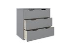 This chest of drawers is part of the Nora room set by Noomi. These three spacious drawers will declutter your childs bedroom without compromising space. They also fit perfectly in the underbed space of the Nora Midi bed frame.
