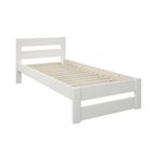 The Tera is available in a single continental mattress configuration and we recommend no more than a 16cm thick mattress for this product due to safety reasons. All Noomi beds are FSC certified, meaning the solid wood is sourced from sustainably managed forests. The Pine is coated with a non-toxic, eco-friendly water-based paint in both a white and grey option. Each individual piece of pine is moisture tested to ensure a strong, long-lasting build.