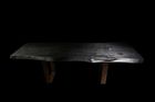 A bold expression of natural form and artisanal precision, this dining table is crafted from a single solid slab of brushed oak, finished in a deep black tone that accentuates its dramatic grain and organic edges. The live edge follows the natural contours of the tree, celebrating the raw beauty of the wood.