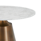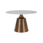 The Olive Large Dining Table is a spacious and stylish round table with modern design. The table features an antique copper coloured column base which provides a sturdy and elegant look, and a large round top with a white marble-effect finish that is easy to clean and maintain. This table is ideal for large family meals and entertaining guests, the perfect functional table for any large dining room.