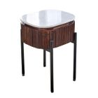 Mango wood bedside table with marble top & metal legs. Completely handmade by our skilled craftsmen in India using eco friendly materials.