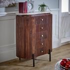 Mango wood wide chest of drawers with marble top & metal legs. Made from 100% mango wood and natural marble each piece is individual and unique.