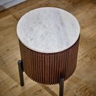 Mango wood side table with real white marble top & metal legs. Made from 100% mango wood and natural marble.