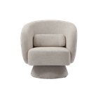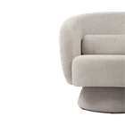 The Rachel Armchair boasts a warm and durable boucle fabric cover, designed for maximum comfort and relaxation. Its compact, curved contemporary design makes it a stylish and unique addition to any living space.