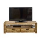 Solid Mango Wood 2 Drawer TV unit. HANDMADE ENTIRELY USING 100% ECO SOURCED NATURAL WOOD.
