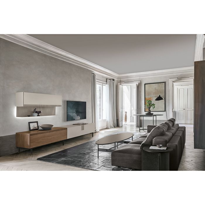 Boiserie CDF madreperla canetté e laccato opaco madreperla 124. Basamento TRACKS.