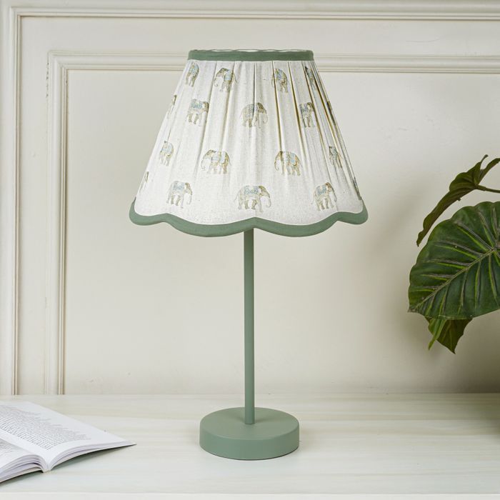 The Tobias Table Lamp is a nod to quirky patterns, featuring elephants on a white canvas. Its green metal base, finished in a sleek powder coat, exudes modern charm. The curvaceous linen white shade adds a touch of whimsy. Perfect for transitional interiors, it’s a stylish accent that brings personality to any space.