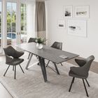 The Visage Extending Dining Table offers a compact design for daily use, measuring 160(240) x 90 x 76cm. It provides flexibility with a unique end pull-out extension mechanism, allowing users to open one end or both ends for full capacity use. The table features a sleek 5.5mm ceramic top on 8mm glass, known for its durability and resistance to heat and scratches. The legs are powder-coated in grey, contributing to the table’s ultra-modern design. The Visage range is exclusively composed of rectangle dining tables in a stylish slate grey color scheme.