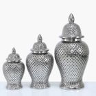 46cm Silver Ceramic Ginger Jar