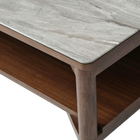 The Willow Coffee Table with Shelves is a signature piece in any living room with its tobacco walnut finish and marbled glass beige top will give your living room a stylish and modern look.